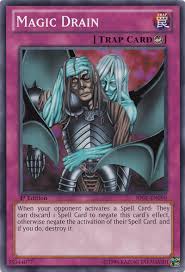 - Magic Drain tem um efeito deveras interessante contra Prophecy, devido ao número elevado de Mágicas que tem na mão. Pense na hora que seu oponente ter que ativar aquela Secrets e você usa Drain em resposta. Provavelmente ele terá que perder aquela Eternity ou Fate que ele iria precisar futuramente no midgame do deck. Ou seja, ela tem objetivo de fazer o deck perder a mão que pode fazer a diferença mais adiante.