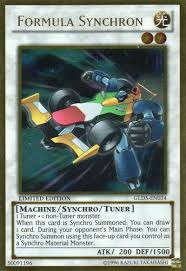 Formula Synchron: Não vejo motivo dele estar limitado, mesmo. É uma carta que do quadro do meta atual é relevante apenas para Chaos Piper, que é Tier 2, e sem contar que os antiguados Synchron merecem uma força por serem o eterno 4fun favorito de quase todos os jogadores. Então, essa mudança não mudaria muito com o jogo, seria apenas beneficial.