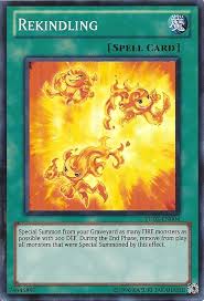 Rekindling: Muitos, como eu, acham que ela devia ser banida, já. Acho pouco provável isso, pois a konami ainda precisa ter um pouco de lucro com os Lavals no TCG, onde o Hidden Arsenal 7 trará o Molten Conduction Field, que é o que faltava para os Lavals irem para o TCG com quase a mesma força que vão no OCG. Não somente isso, dois dos três decks que vem do Cosmo Blazer e que vão estar no futuro meta usam esta carta: Fire King e Hazy Flame, ou seja, acho que a semi-limitação dela para o próximo formato agrada a todos e principalmente os cofres da Konami.
